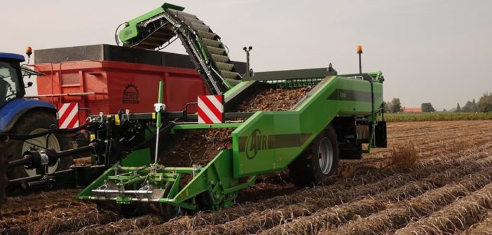 As a trailed elevator harvester, AVR claim the Lynx is unique in the market. A two-row harvester it can do both in-line and off-set harvesting and is entirely hydraulically driven.