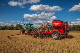 A key feature of the drill is that it needs a tractor of just 240hp-300hp to pull it – around 20hp for every metre. Most drills of a similar width require between 40hp-50hp per metre.Its low draught, 12mm wide, long-life tungsten carbide tipped boron steel tines cause minimal disturbance, helping to maintain good soil structure.