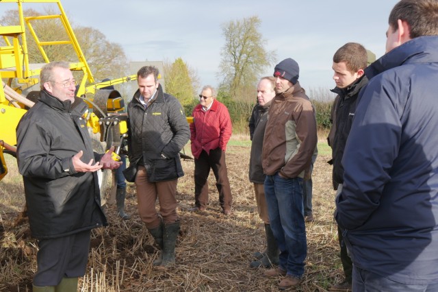 During the meeting, the group saw demonstrations of the two different drills – one disc and one tine – in a field of Sam’s which was yet to be drilled.