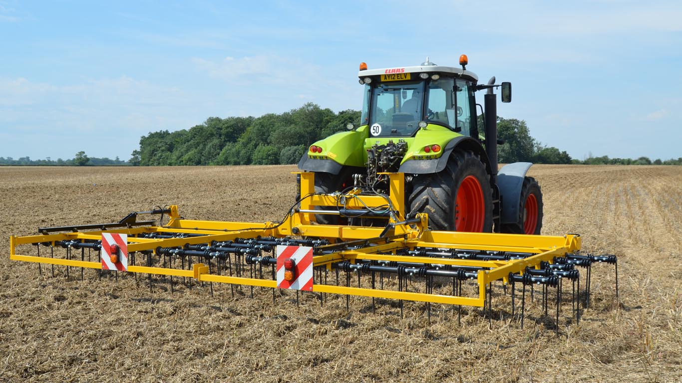 The implement covers 20 ha/hr and the operation uses just over 1 litre/ha of diesel, making it so fast and cheap that it can be repeated every 7 to 14 days in favourable conditions. So little soil is moved that if the weather does turn wet this mini-tilth will dry quickly, allowing another pass with the Straw Harrow or drilling with a 6m Claydon Hybrid.