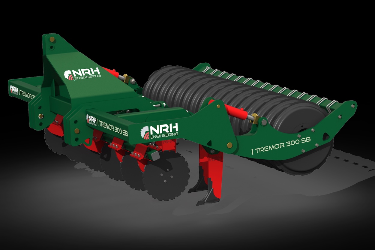 NRH Engineering has equipped the Tremor with hydraulic disc and packer roller depth adjustment, allowing the operator to make adjustments from the cab. With transport widths of 3.1m for the rigid model and less than three metres for the folding version, moving the Tremor from field to field is hassle-free.