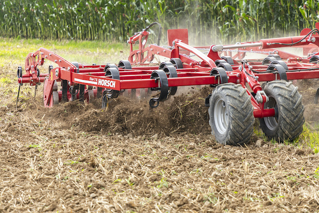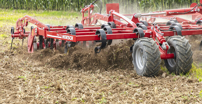 A comprehensive packer range is available for the Finer SL to be optimally equipped for all requirements of the specific site. In the future, the price list will include an attachment kit for the HORSCH MiniDrill for catch crop sowing. By means of the pneumatic drill unit seed and seed mixtures can be metered extremely precisely from the 400-litre tank and distributed in front of the packer/harrow via baffles. Moreover, the Finer SL can also be configured with a fully-fledged seed kit with 2 distributor towers and tramline valves to be able to sow without a packer in very wet conditions with a tine spacing of 15 cm. In this case, the seed supply is carried out by the HORSCH Partner FT.