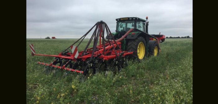 Drills will include Ryetech’s Ma/Ag SSP low disturbance disc drill, which has a 3-6m working width and can deliver seed only or seed and fertiliser. It has independent floating coulters with minimum 250kg pressure and individual depth control for even sowing depth across the full width of the drill. Its coulters are staggered alternately between front and back to operate effectively without risk of blocking in thick cover crops.