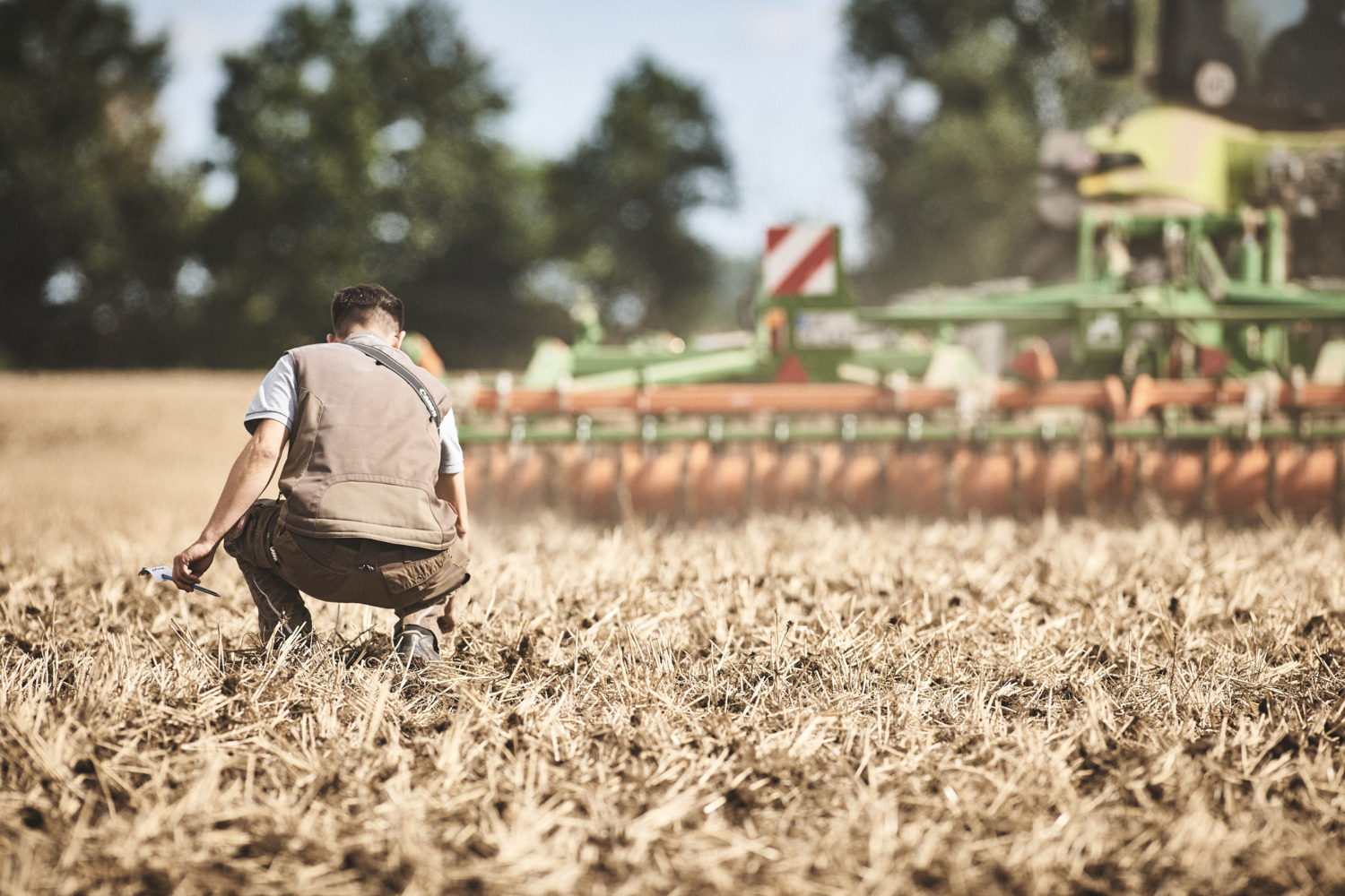 Using mounted cultivators, the operators shallow- and deep-cultivated the strips of slightly and very loamy sand on the test plots over a three-day period. In the first part of the test, the operators – both farmers and agricultural contractors – had the chance to adjust relevant settings such as front ballast, wheel weights, tyre pressure and engine droop on the two CLAAS AXION 870 CMATIC tractors as they saw fit during the initial set-up and to continue adjusting them during the test drive – without using CEMOS for Tractors. CLAAS provided not only the tractors but also a selection of different ballast weights.