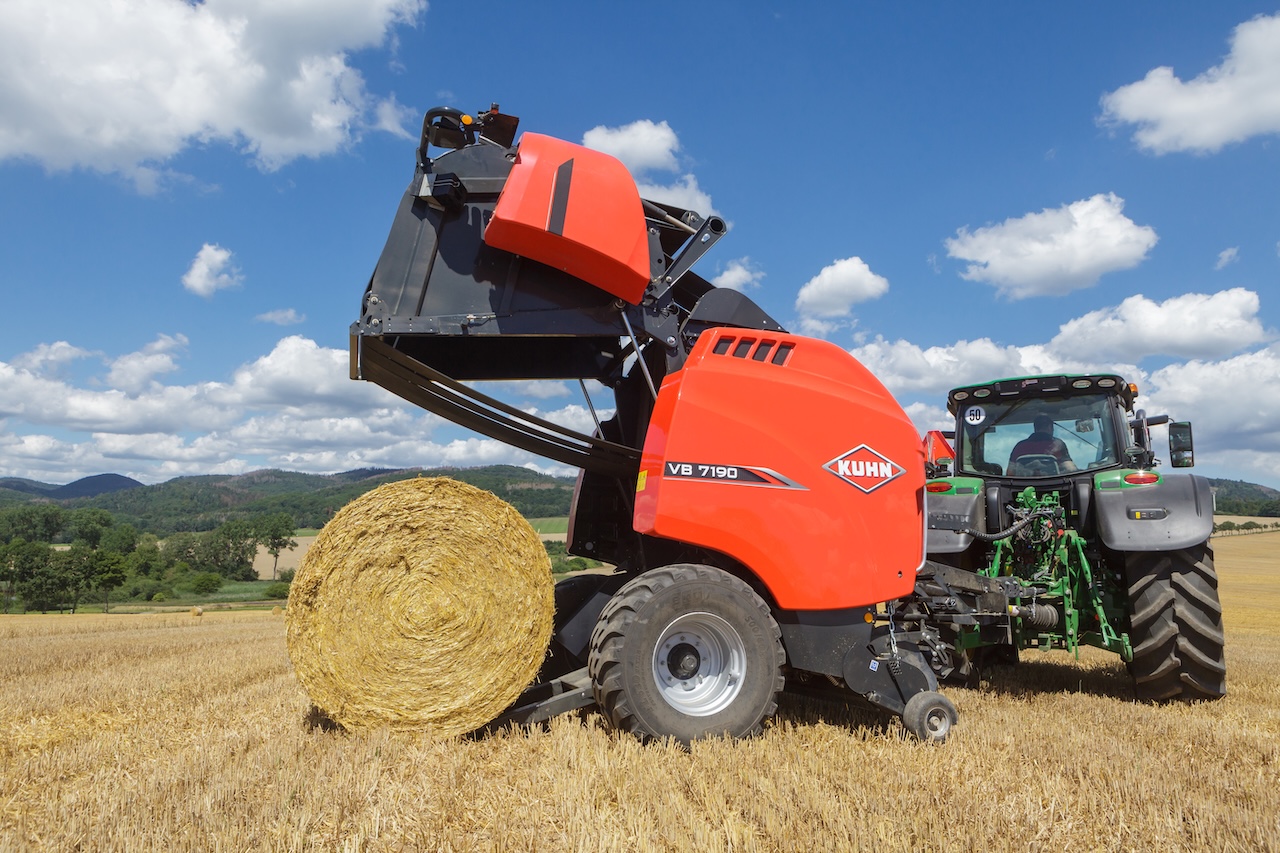 Kuhn is introducing a new bale weighing system. This innovation helps farmers and contractors get precise and reliable data, improving their productivity and efficiency. It makes the VB 7100 the first round balers to weigh bales directly on the bale kicker, ensuring accurate measurements.