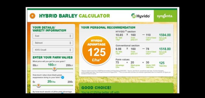 UK winter barley growers considering switching to a hybrid variety can use the “Hybrid Barley Calculator” to work out their potential return on investment when compared to a conventional variety, from Syngenta.