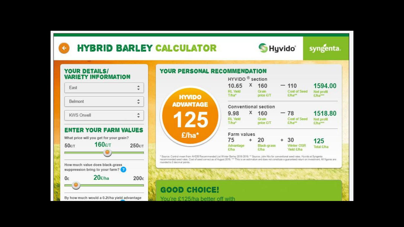Recently the cost of conventional barley seed has increased whilst the hybrid seed cost remains stable, this is reflected in the new app to give an accurate reflection of the current market. If you have ever considered growing a hyvido variety, 2018 is the year to do it, say Syngenta.