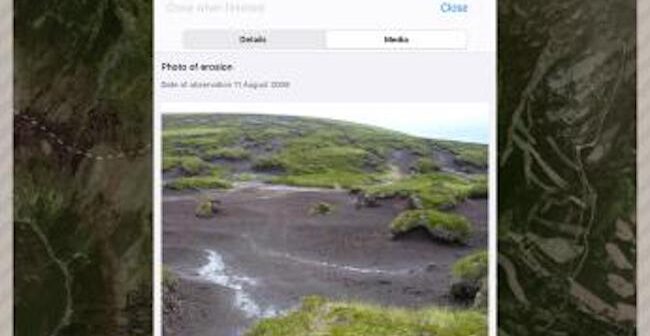 Available for iOS and Android devices, the Soil Erosion Scotland app helps users to understand and identify different types of soil erosion and makes it possible to contribute user-generated records and images, which are then added to a shared map of sites of recorded erosion. The iOS app also includes a map of modelled soil erosion risk and the National Soil Map of Scotland.
