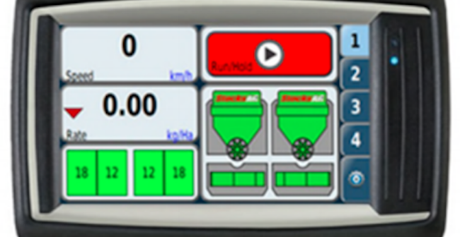 The sophisticated TM controller is supplied with a 4.3” colour touchscreen and has a simple and intuitive layout; displaying the application rate and forward speed as well as cutting edge features such as section control and headland control. It is also capable of applying variable rates in conjunction with an uploaded precision farming map, clearly shown in real time on the control screen.