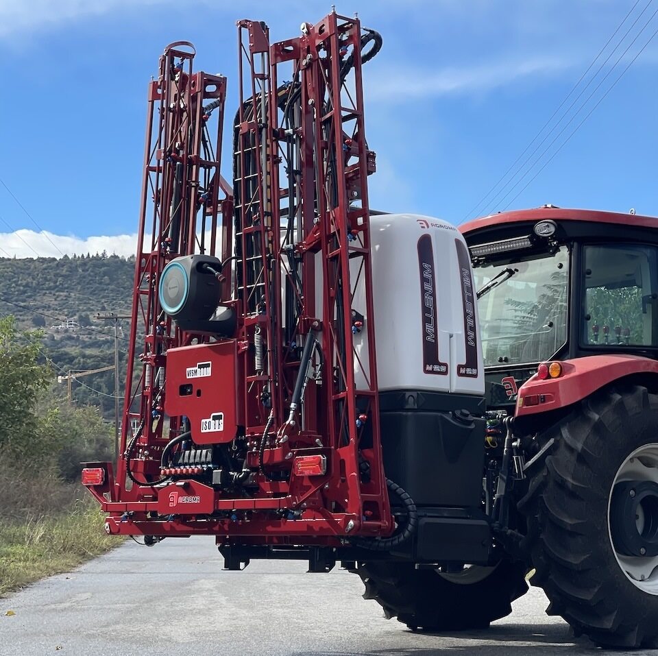 AGROMA manufactures two mounted ranges. Millenium SM sprayers feature 800-1,500 litre tanks and 12-15m booms, while Millenium M models have 1,000-1,500 litre capacities and 15-18m booms. Both ranges have electro-hydraulic boom control and 180 l/min four-piston diaphragm pumps, while options include ISOBUS control.
