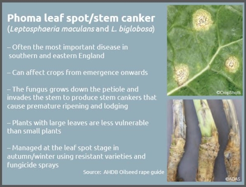 The October update of the AHDB-funded phoma leaf spot forecast shows the disease has got off to a head start this season.