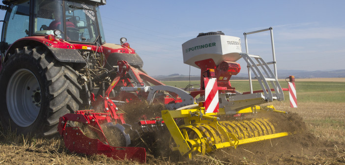 Pottinger has shown its catch crop seed drill at Agritechnica. Called the Tegosem, it can be used in combination with Pöttinger’s stubble cultivator or disc harrow and enables soil preparation and catch crop seeding in a single pass.
