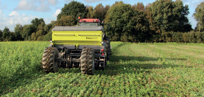 For drilling into cover crops, the EasyDrill is an ideal choice of machine: its press wheel and disc coulter combination allows it to roll down tall crops and slice through them, to place the seed accurately at the required depth. There is no need to mulch the cover crop before drilling, and there are also no problems with blocking, that may occur with other drills working straight into cover crops.
