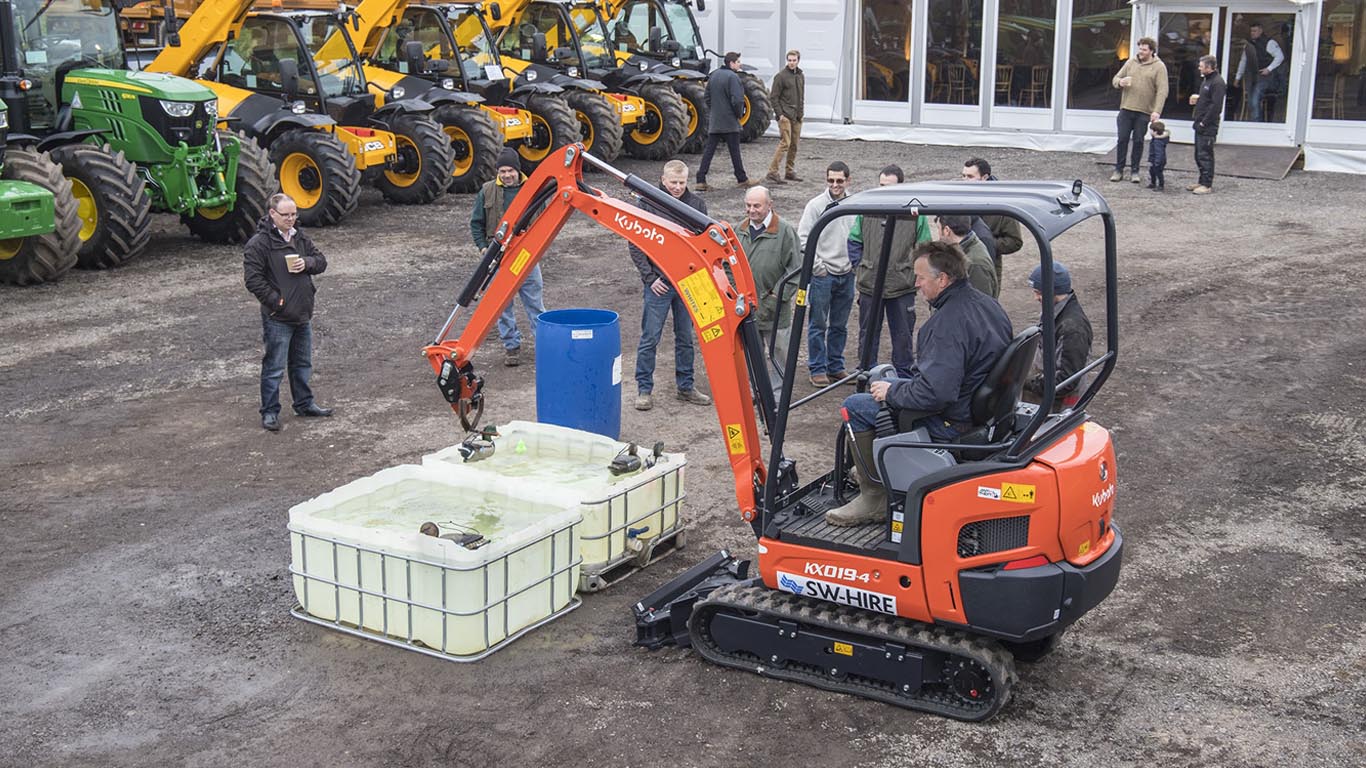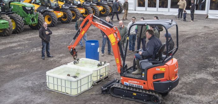 Prior to the Charity Ball getting underway, the SW Hire Open Day saw over 200 visitors pass through the gates to see the latest agricultural and construction machinery and equipment available for nationwide hire for the 2018 season. In addition to a pig roast and hot drinks, visitors had the chance to donate money from taking part at an electronic clay shoot, and also competing against the clock using a mini excavator to transfer ducks of different sizes from one make-shift pond to another.