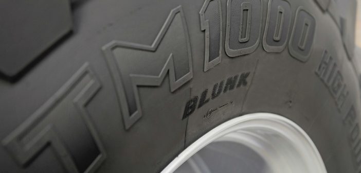 The YourTire personalisation service is demonstrated on stand on an IF900/65R46 TM1000 High Power tyre. YourTire is an online service that allows farming professionals to personalise their tyres with either their name or logo.
